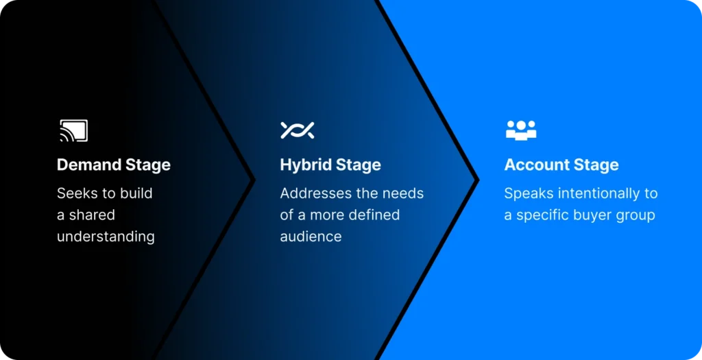 Content becomes more specific, addressing recognizable scenarios, constraints, or priorities within a defined audience. - High-focus ABM execution